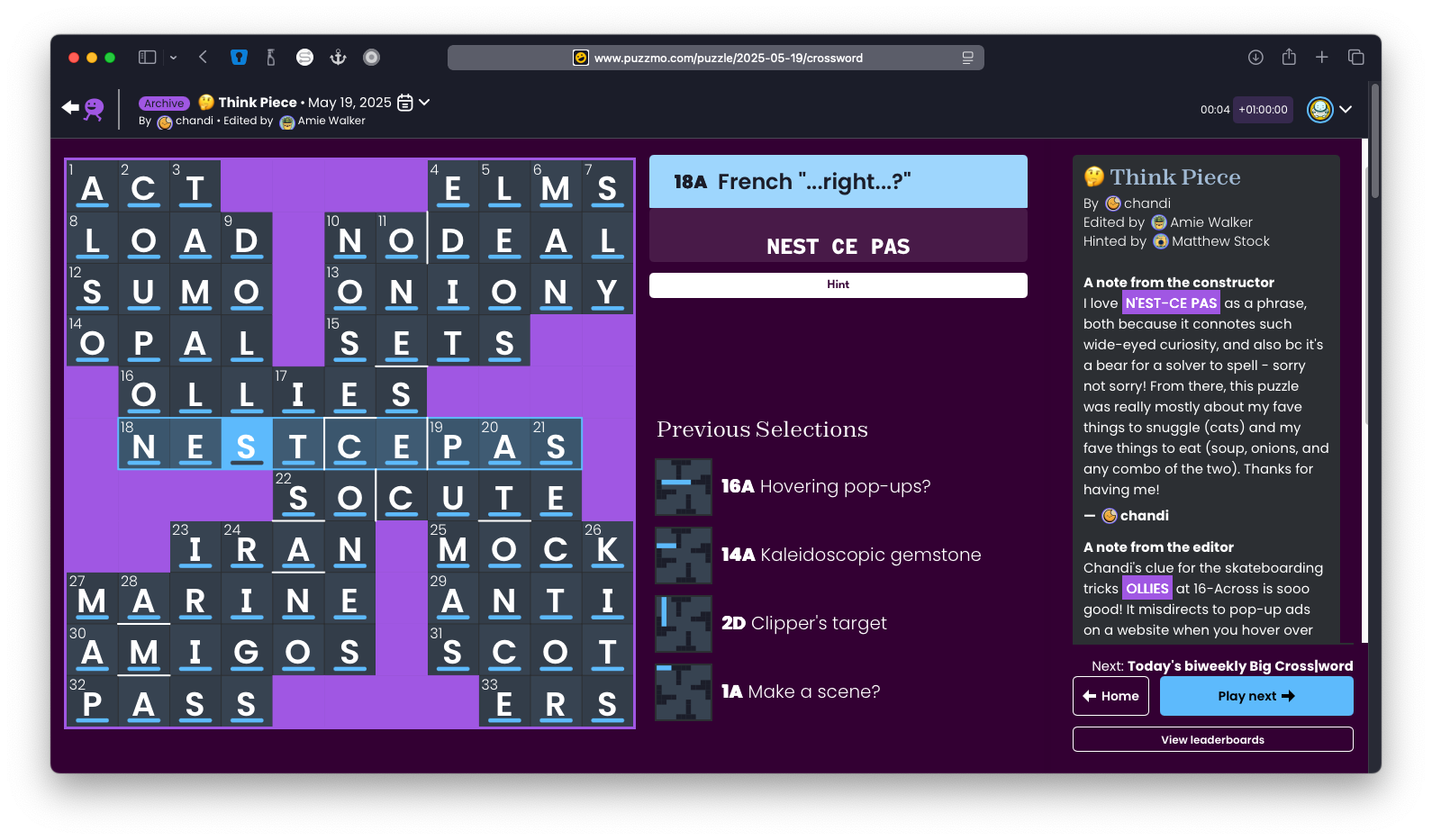 Which looks like this on puzzmo.com today!